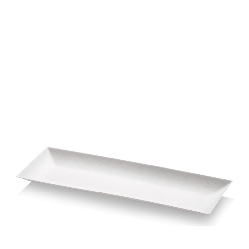 Ces assiettes blanches design à usage unique 27x9 cm de très belle dimension sont très complémentaires avec les assiettes rectangulaires 18x9 cm et carrées 9x9 cm pour des repas chics apportant de la modernité.